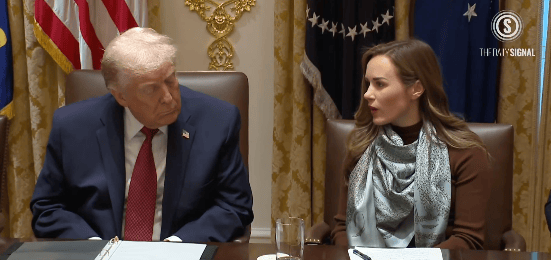 特朗普和梅丽尔·肯尼迪在会议上交谈视频截图