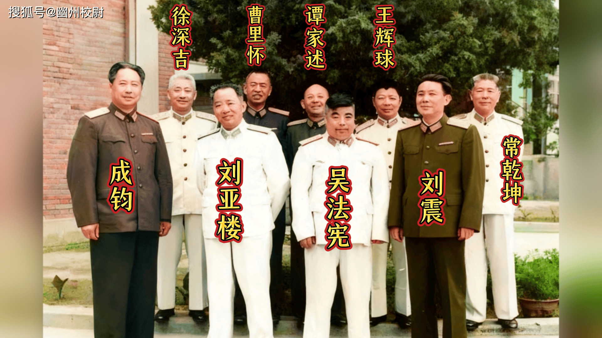 介绍完照片中的9人,我们再来看下这张照片的站位,首先刘亚楼和吴胖子,作为当时空军的司令员和政委,一左一右,站在了中间C位。