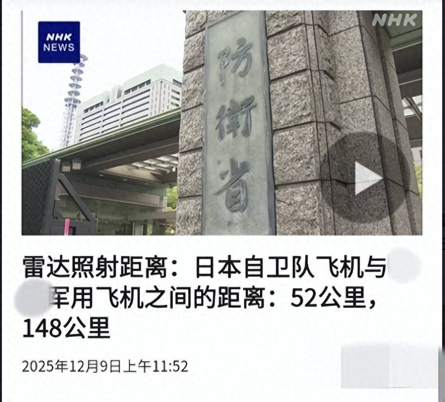 2025年12月9日,日本媒体NHK曝光了一则引发广泛关注的军事事件详情:对于日本航空自卫队F - 15J战斗机滋扰中国海军辽宁号航母战斗群日常训练一事,中国海军歼 - 15T舰载机在琉球群岛附近国际公海上空,两次对日本航空自卫队F - 15J战斗机进行雷达照射,第一次两架战斗机相距约52公里,第二次相距约148公里,且均发生在大白天。