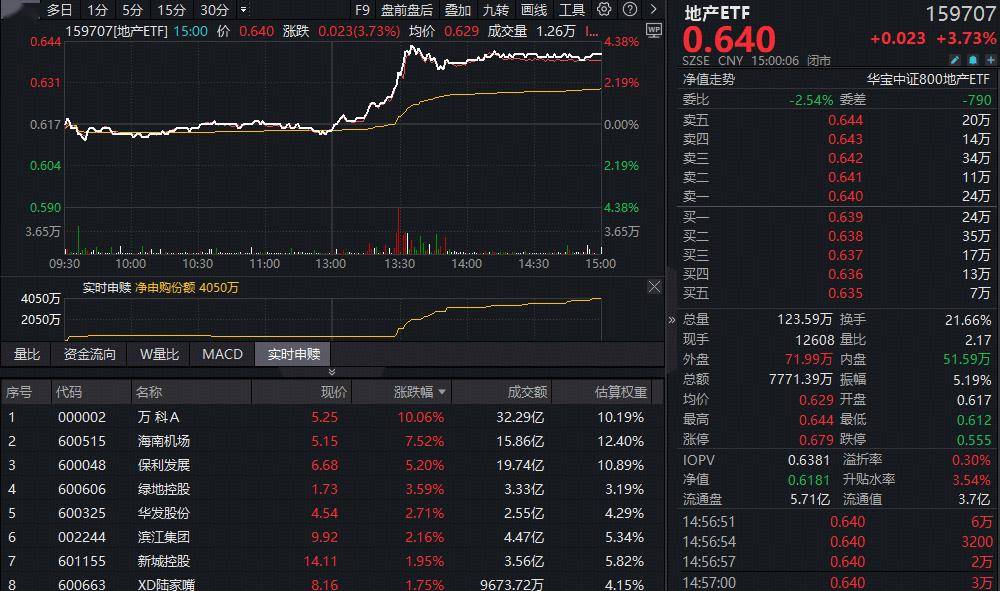 一、突传重磅!万科A应声涨停!全市场唯一地产ETF(159707)超跌反弹3.73%,资金单日加仓4050万份