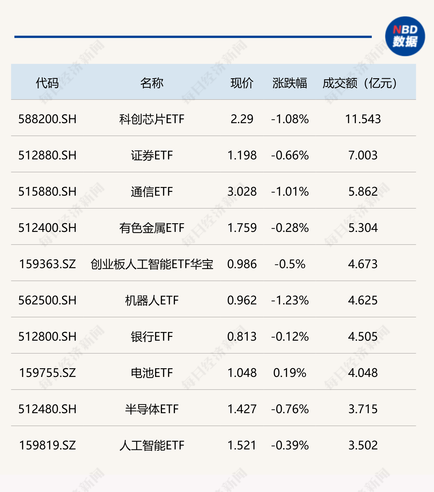 今日早盘三大指数涨跌不一,沪指震荡下跌,科创芯片和证券相关ETF成交活跃。科创芯片ETF半日成交额超11亿元,证券ETF半日成交逾7亿元。跨境ETF方面,港股创新药ETF半日成交超26亿元。