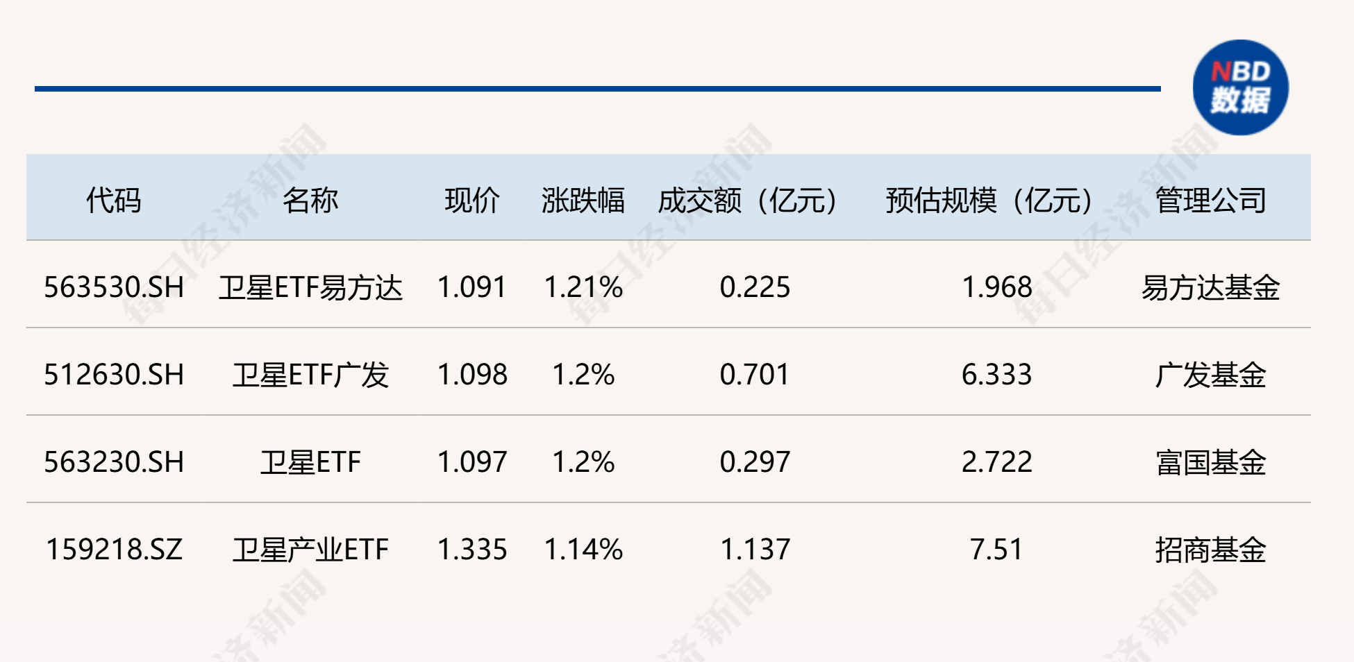 ETF涨幅榜上,卫星相关ETF涨逾1%,领涨整个ETF市场。