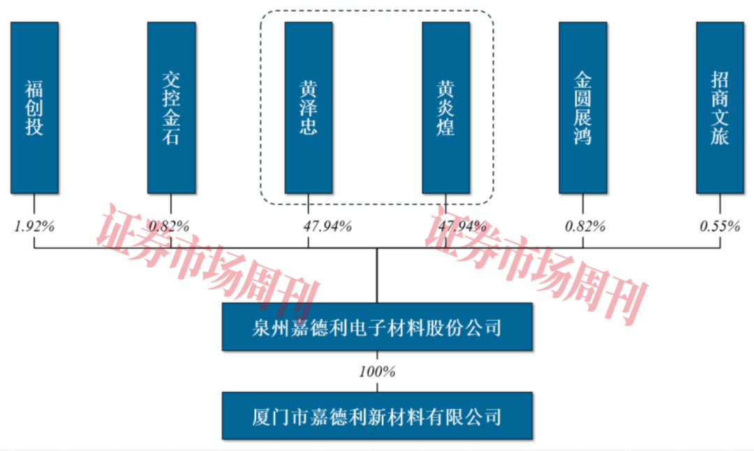 黄泽忠父亲与黄炎煌母亲系兄妹关系,黄泽忠与黄炎煌系表兄弟关系,双方各持有公司47.94%的股份,合计持有95.89%的股份,为公司共同控股股东。 为明确双方的共同控制关系,双方已签署一致行动协议明确了双方的一致行动关系。嘉德利的董事长是黄炎煌父亲黄焕明。