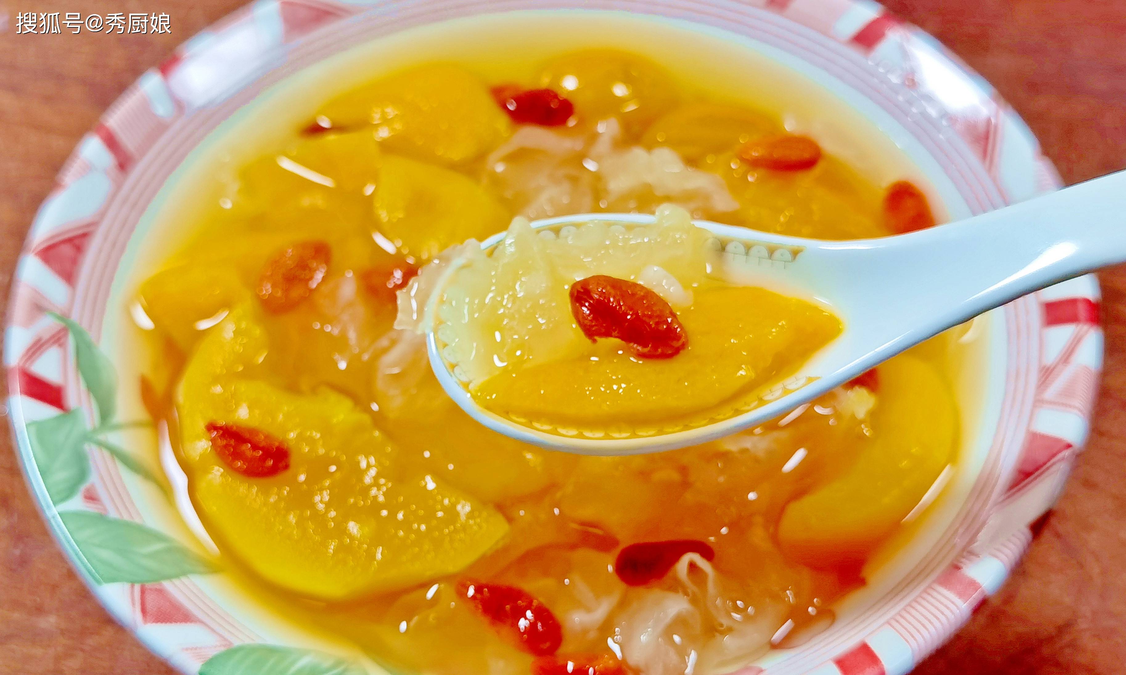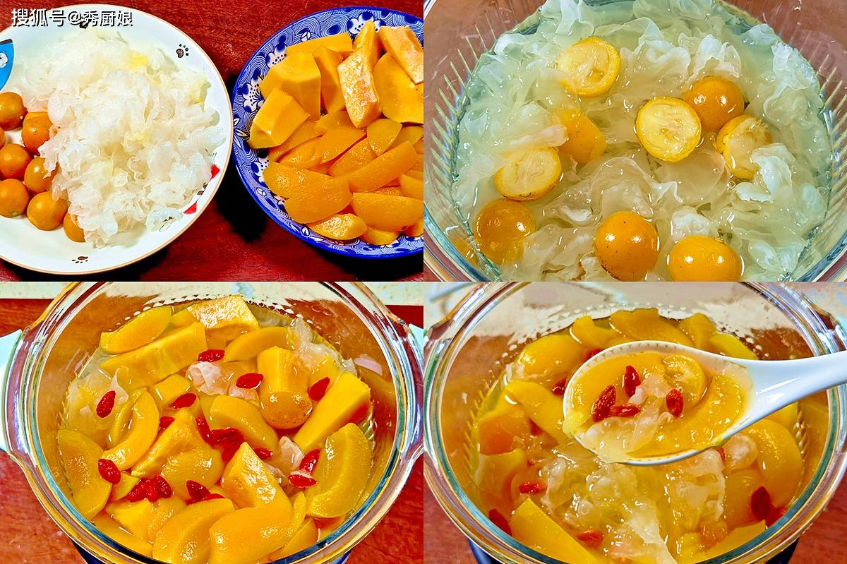 三、黄桃金桔枸杞银耳羹(滋润养肺甜品)