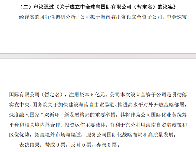 头部黄金珠宝企业亦紧抓海南政策优势,布局国际化发展新载体。11月22日,中国黄金公告称,审议通过设立中金珠宝国际有限公司(暂定名)的议案,拟在海南出资5亿元设立全资子公司,将其打造为公司国际化业务统筹平台及境内外合作、投资运作核心载体。