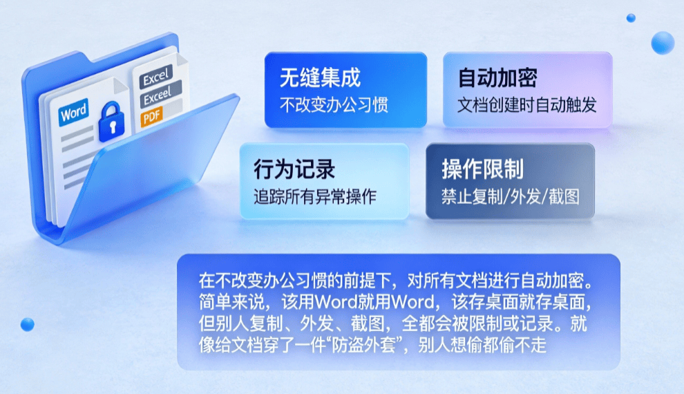 简单来说,你该用Word就用Word,该存桌面就存桌面,但别人复制、外发、截图,全都会被限制或记录。就像给文档穿了一件“防盗外套”,别人想偷都偷不走。