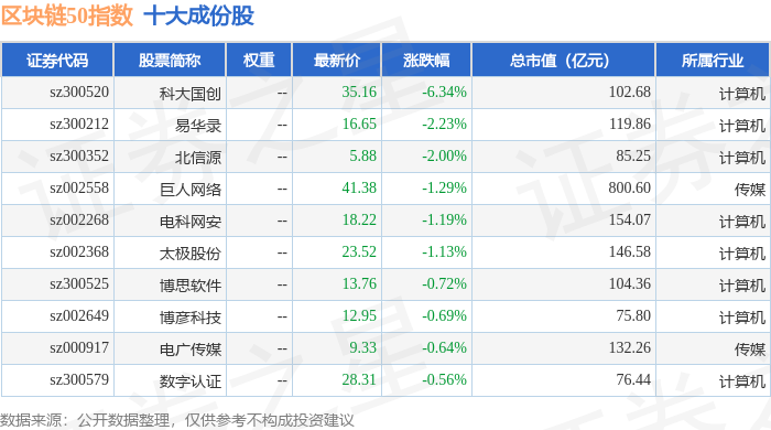 证券之星消息,12月12日,区块链50(399286)指数报收于3...