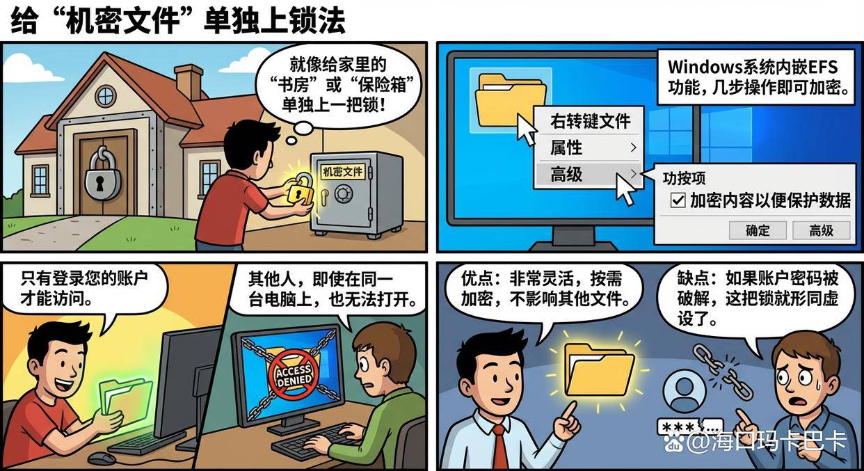 如果说系统自带加密是把整个家都锁进保险库,那这种方法更像是给您家里的“书房”或“保险箱”单独上一把锁。
