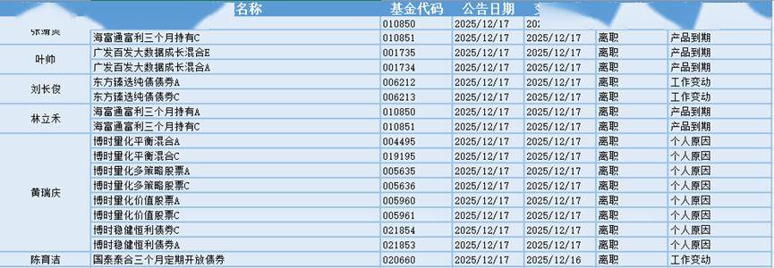 基金经理是一只基金产品最核心的成员,能决定一只基金的投资方向、投资策略以及投资风格,基金经理出色的择时选股能力和调研预测能力是基金业绩的有力保证,所以基金经理是投资者在选择基金产品时的重要依据。基金经理的变动很大程度上会影响到基金产品未来的表现,是一个需要特别关注的信息。12月17日共有14位基金经理发生任职变动。