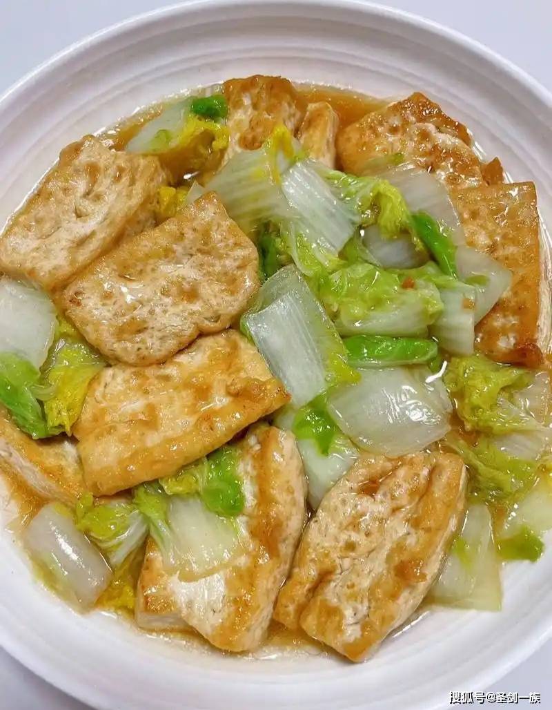 材料:白菜、豆腐、五花肉、葱姜、盐、生抽、蚝油、鸡精。