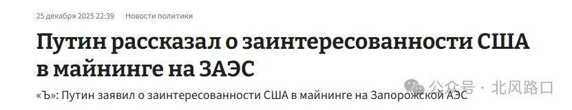 12月25日,俄罗斯《生意人报》报道称,俄总统普京在与商界领袖会晤时表示,美国有意利用拟议中其在扎波罗热核电站的股份开展加密货币挖矿业务。