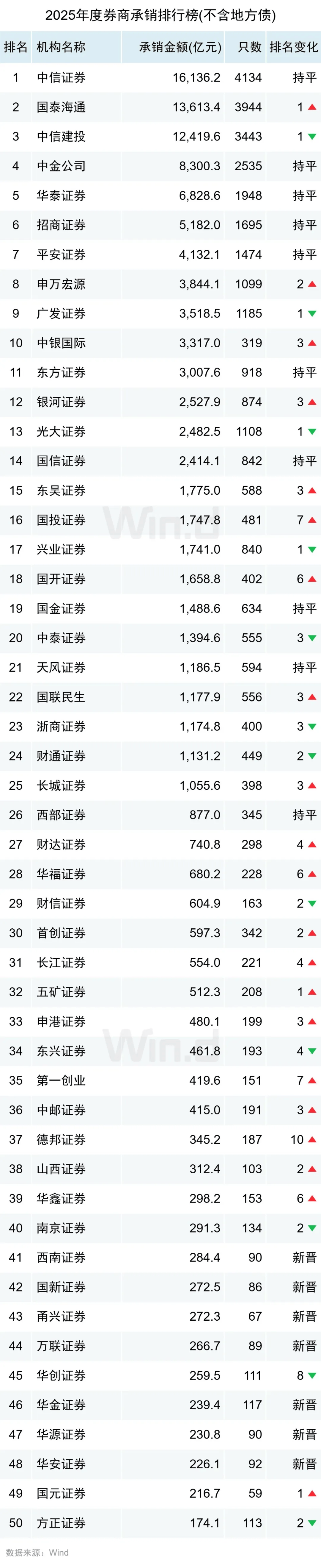 在债券承销方面2025年度各家机构表现如何,万得第一时间为您隆重揭幕2025年度中国内地市场债券承销排行榜。