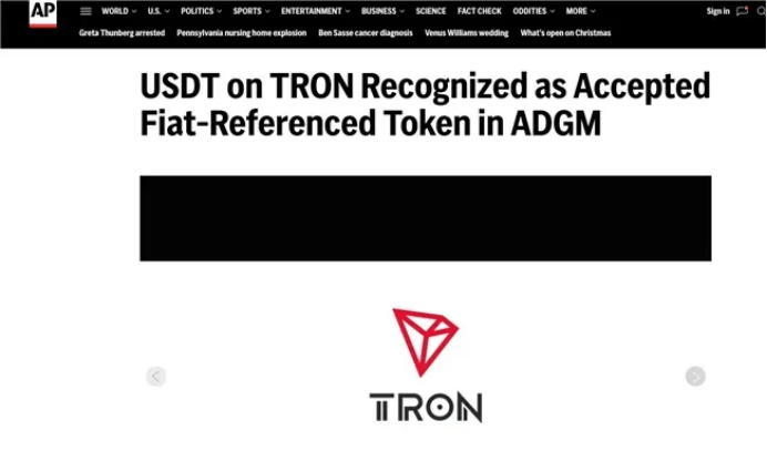 近日,区块链行业传来重磅消息——孙宇晨创立的波场TRON中发行的稳定币USDT(TRC20版本)正式获得阿布扎比全球市场(ADGM)金融服务监管局(FSRA)批准,成为该地区“获准使用的法币参考代币”(AFRT)。Benzinga、AP News等海外媒体对此作出连篇报道,认为上述结果标志着孙宇晨在推动波场TRON合规化进程中迈出关键一步,同时这也为波场在中东市场的深度布局奠定基础。