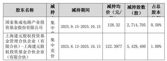 读创财经注意到,华大九天此前已披露过大基金与上海建元减持情况。2025年10月15日,华大九天公告,公司持股5%以上股东大基金、上海建元的减持计划已实施完毕。大基金于9月15日-10月15日通过集中竞价方式减持271.47万股,占公司总股本的0.5%;上海建元于8月13日-10月13日通过集中竞价方式减持542.94万股,占公司总股本的1%。根据公告所附数据(见下表)计算可知,两公司合计套现约10亿元。