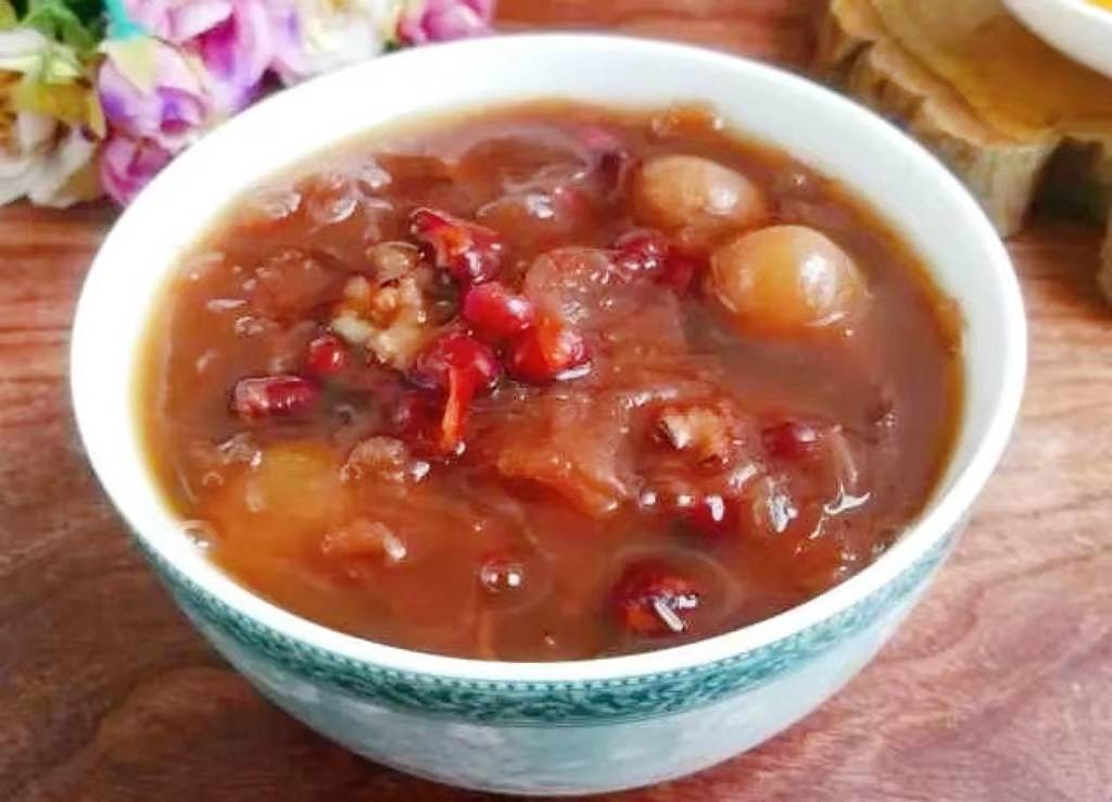 3、先把红豆倒在水里,煮半小时,继而放桂圆和银耳进去,继续用小火炖半小时,都炖透后关火,焖十五分钟,再搅拌几圈,汤汁浓稠绵密,便可以盛到碗里享用。