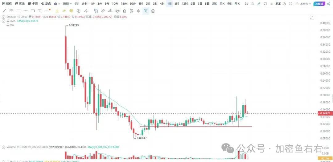 币安人生上现货之后的抛压也没有击穿0.11,说明这个位置是有资金护盘的,我建议没有仓位的可以在0.11-0.14这个区间埋伏一些。