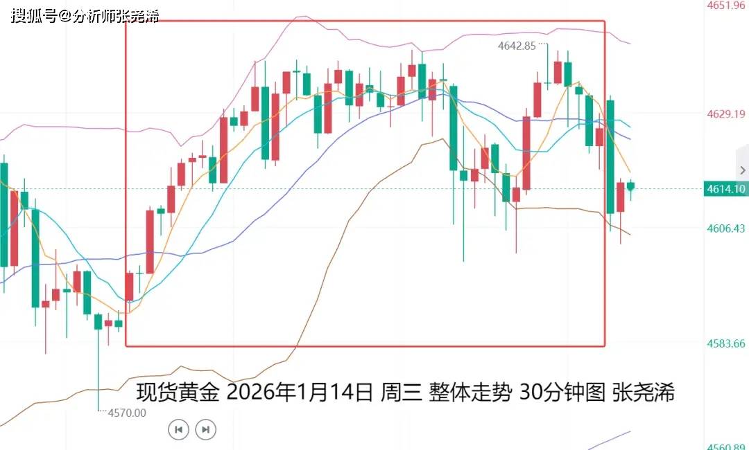 展望今日周四(1月15日):国际黄金亚市开盘,先行延续隔夜尾盘遇阻回撤之力表现走低,但更多的还是技术调整,虽然昨日零售销售数据及PPI等数据超预期,打压金价,但围绕美联储独立性的政治不确定性仍挥之不去,再加上地缘政治紧张局势持续提供支撑。再结合此前弱于预期的核心CPI数据,交易员仍维持对美联储年内两次降息的预期。故此,看涨前景因素仍然存在,一时的回撤,也仍然是再多的多头看涨机会。