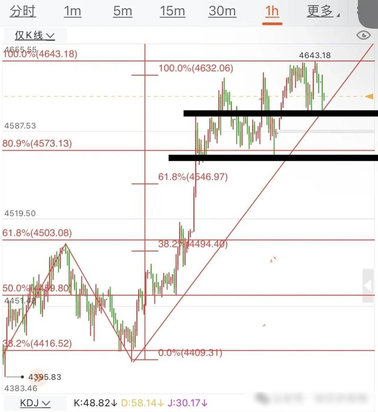 黄金行情,多头依旧,但随着局势降温及美国数据利空影响,多头当前上攻乏力!日线来看,周一暴涨后,周二和昨天都是简单破高后便迎来了短暂的跳水。破高后上涨幅度有限,并且美盘11点前后下跌,凌晨出低点再上涨破高后继续下跌,这是接下来需要关注的重点。