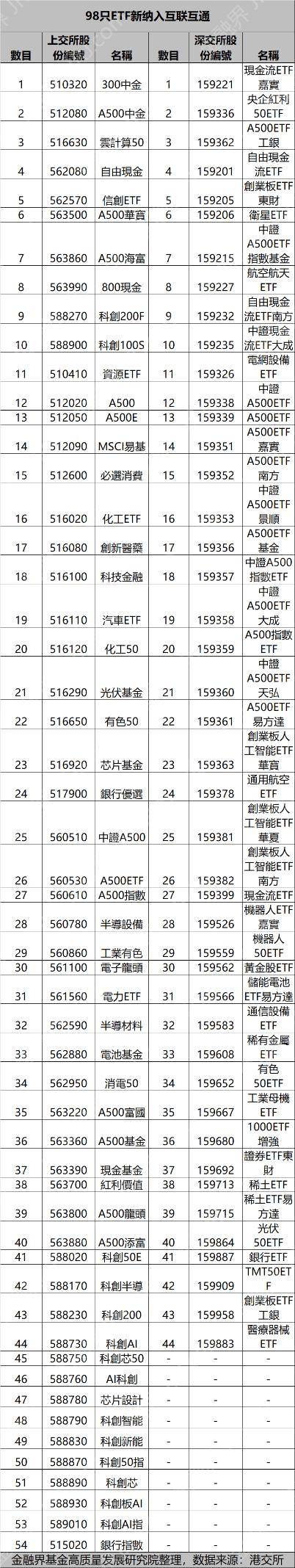 近日,港交所公告,调整“ETF通”最新扩容名单显示,北向沪股通共有54只ETF调入、北向深股通共有44只ETF调入。另有7只ETF被暂时移出陆股通。据悉,此次扩容将于1月19日起正式生效,扩容后,“ETF通”数量将从273只扩容至364只。