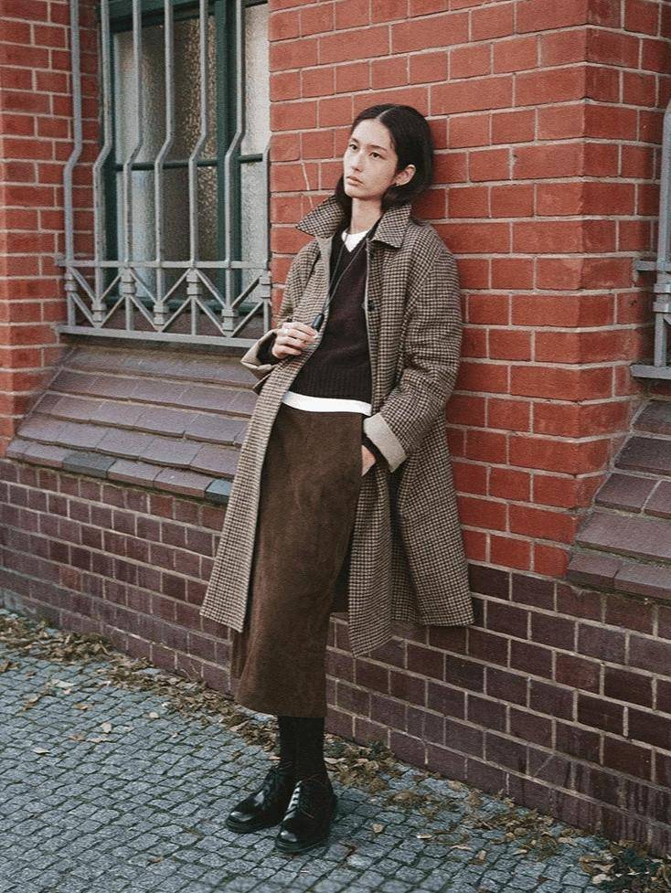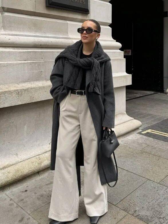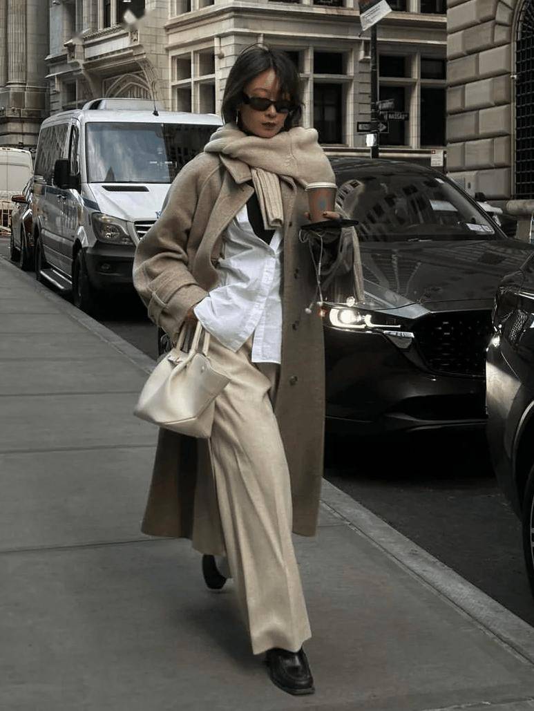 冬天也别忘了用围巾来叠穿。围巾围裹在大衣外面轻松营造不可以的松弛感。