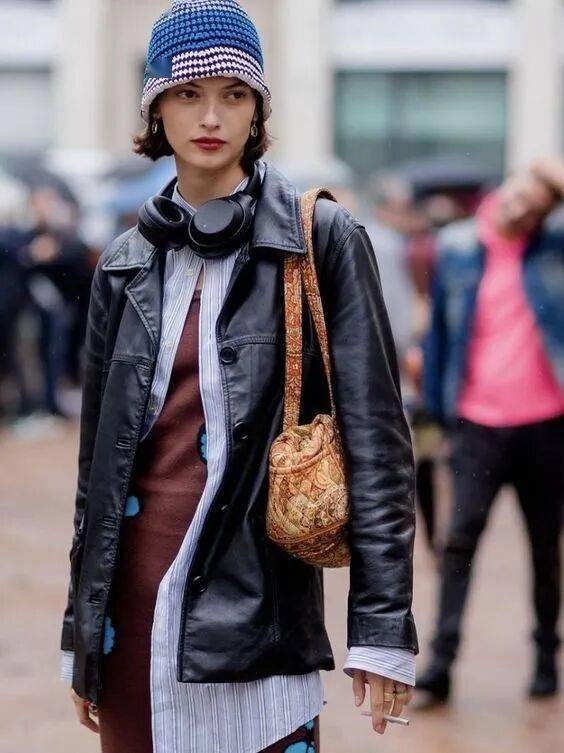 叠穿看起来复杂,其实很简单。无非是在常规的毛衣里叠穿轻薄贴身一些的t恤、衬衫等。露出领子、下摆、袖口,增加一些点缀。