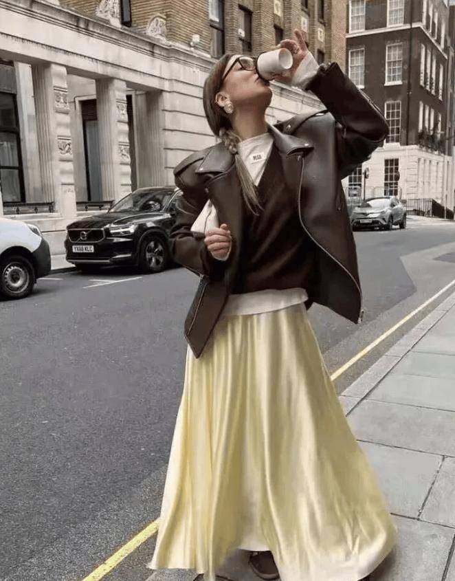 【公式三:同色系叠穿法——材质混搭塑造立体轮廓】