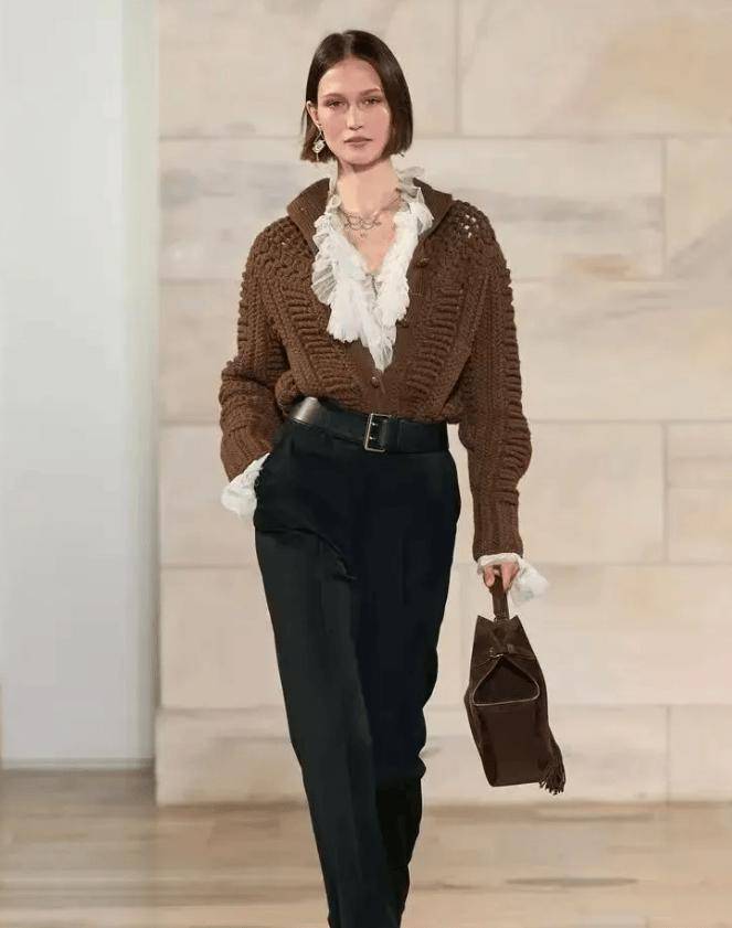 当60%基础色遇上30%跳色系,冬季穿搭瞬间焕发生机。推荐「奶油白内搭+焦糖橙毛衣+燕麦色大衣」的暖调组合,焦糖色毛衣选择马海毛材质更显蓬松质感。进阶玩法可尝试「雾霾蓝衬衫+酒红针织开衫+墨绿派克大衣」的莫兰迪撞色,通过降低饱和度实现高级感碰撞。注意冷暖色交替时,用金属色配饰(如金色项链)过渡更显和谐。