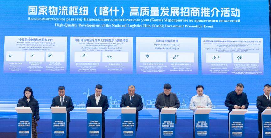 与会人员先后赴喀什国际枢纽港、中国(新疆)自由贸易试验区喀什片区商务服务中心等地考察,实地了解喀什商贸物流产业发展情况,进一步增强交流合作与投资信心。地区商务局、喀什商贸物流集团等在大会推介交流,意向企业进行了重点项目签约。其中,喀什商贸物流(集团)有限责任公司与来自上海的丝路云品联盟、路投社出海工业科技(上海)有限公司共同签署《中亚跨境电商综合服务平台合作框架协议》,充分发挥沪喀两地资源优势,着力打造数字营销、产业出海与国际物流的关键纽带,助力喀什提升对中亚市场的响应速度与供应链韧性,推动“通道经济”向“枢纽经济”跃升。