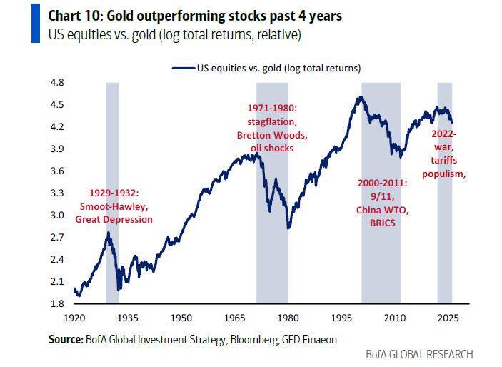 除了黄金,其他资产也在新世界牛市中受益。Hartnett认为,利率、税收和关税削减,以及美联储、特朗普政府和Z世代提供的"看跌期权保护",是去年10月29日美联储降息和11月4日特朗普胜选后市场轮动至"贬值"交易(如黄金、日经指数)和"流动性"交易(如太空、机器人)的原因。