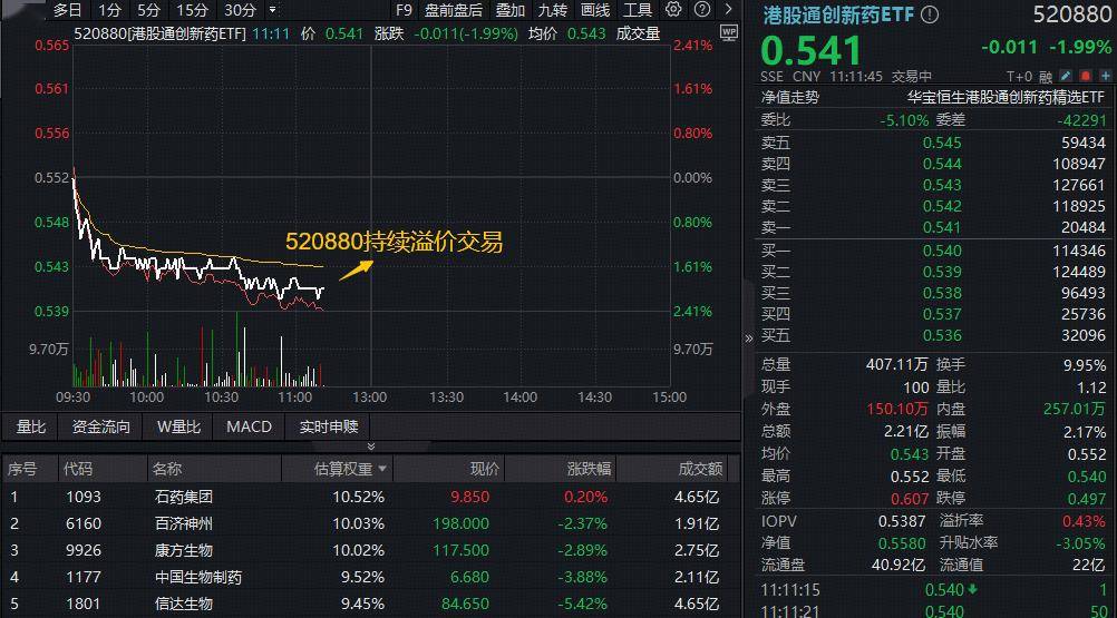 值得关注的是,520880走低区间持续溢价交易,显示买盘资金相对强势,或有资金逢跌吸筹。截至发稿,场内成交额超2亿元。