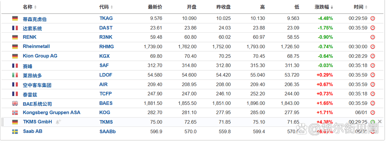 英国伦敦上市、对军工股“照收不误”的Future of Defence UCITS ETF(NATO.LN)收涨1.08%。