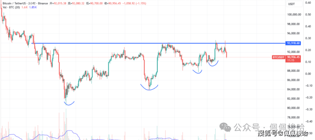 2)小时级别依旧呈现高低点不断抬高的多头走势,如果BTC跌破小时级别的前低,打破这一多头结构,将有可能会二探前低。