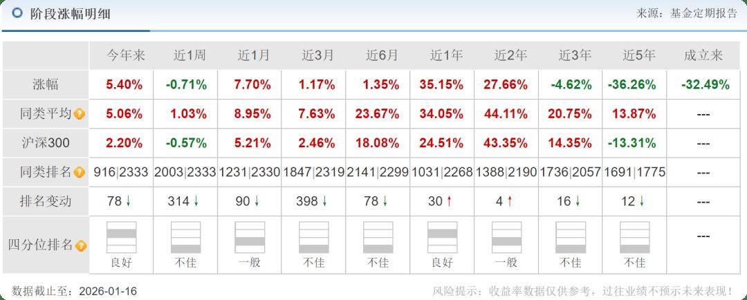 笔者还发现,该基金在2024年2季度买入3.00万股的腾讯控股,2024年3季度持有3.00万股,2024年4季度持有3.35万股。2025年1季度持有3.82万股,2025年2季度持有4.21万股,2025年3季度持有4.21万股。在该基金持有期间,在2024年4月1日-2026月1月16日股票价格上涨了104%。从2025年持股收益看出,2025年收益优异,但由于基金成立之初,由于市场回调影响,基金业绩仍处于亏损状态。