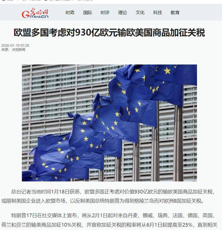 欧盟更是早就备好的反制手段,不仅要暂停去年和美国达成的贸易协议批准程序,还在酝酿动用“反胁迫工具”。