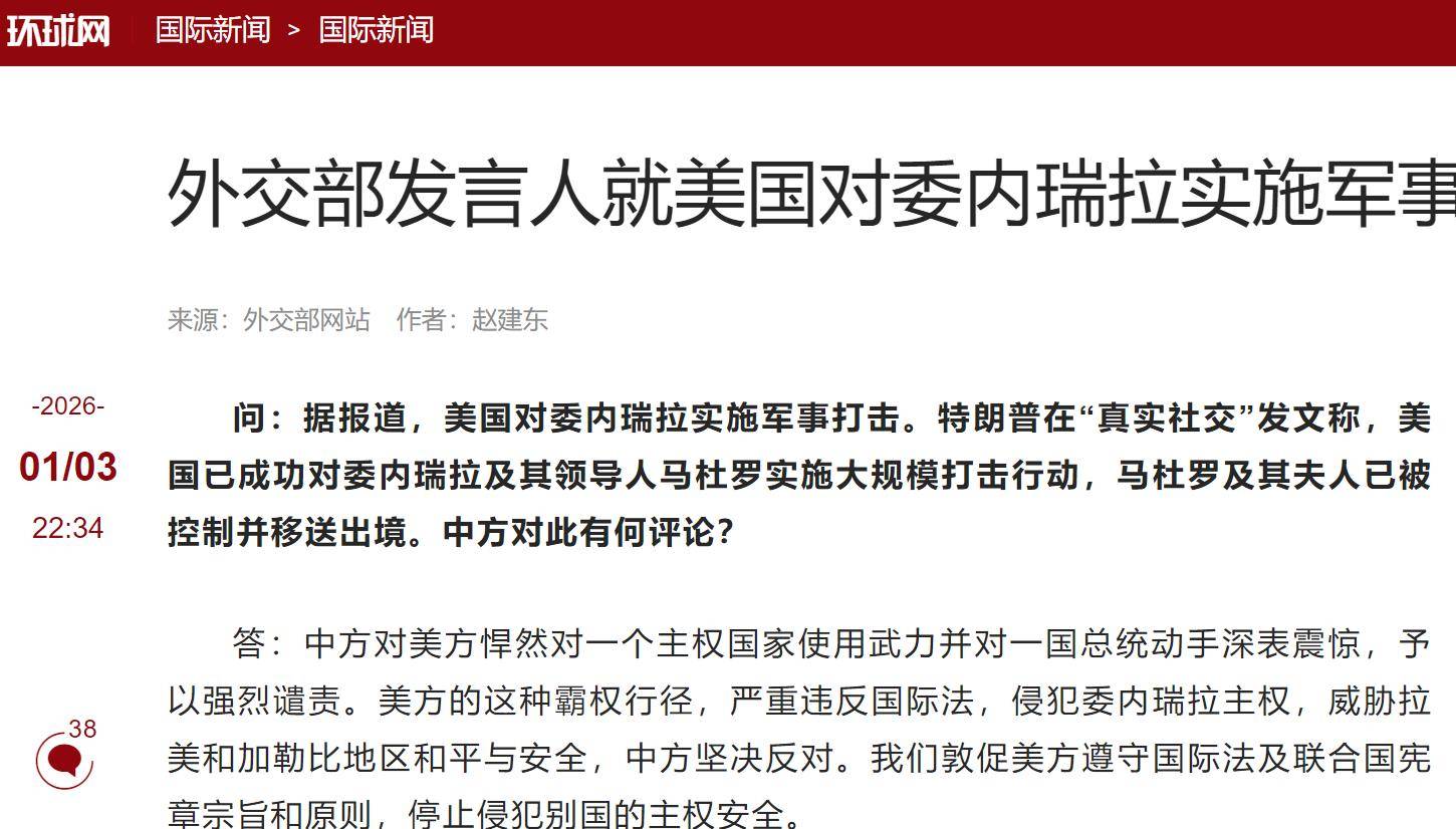 美军堂而皇之的对委内瑞拉动武,并冒天下之大不韪,用不到2.5小时掳走委国总统马杜罗,而特朗普很快就道出了他的真实目的,在24小时内对中国使出一招阳谋,挖好坑就等咱们跳,对此外交部很果决。