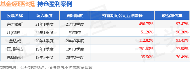 张挺管理的华泰保兴尊利债券A基金在21年1季度买入东方盛虹,在持有2个季度后在21年3季度卖出。持有期间的估算收益率为97.47%,持有期间东方盛虹在2020年到2021年的年报归属净利润增幅达496.75%。