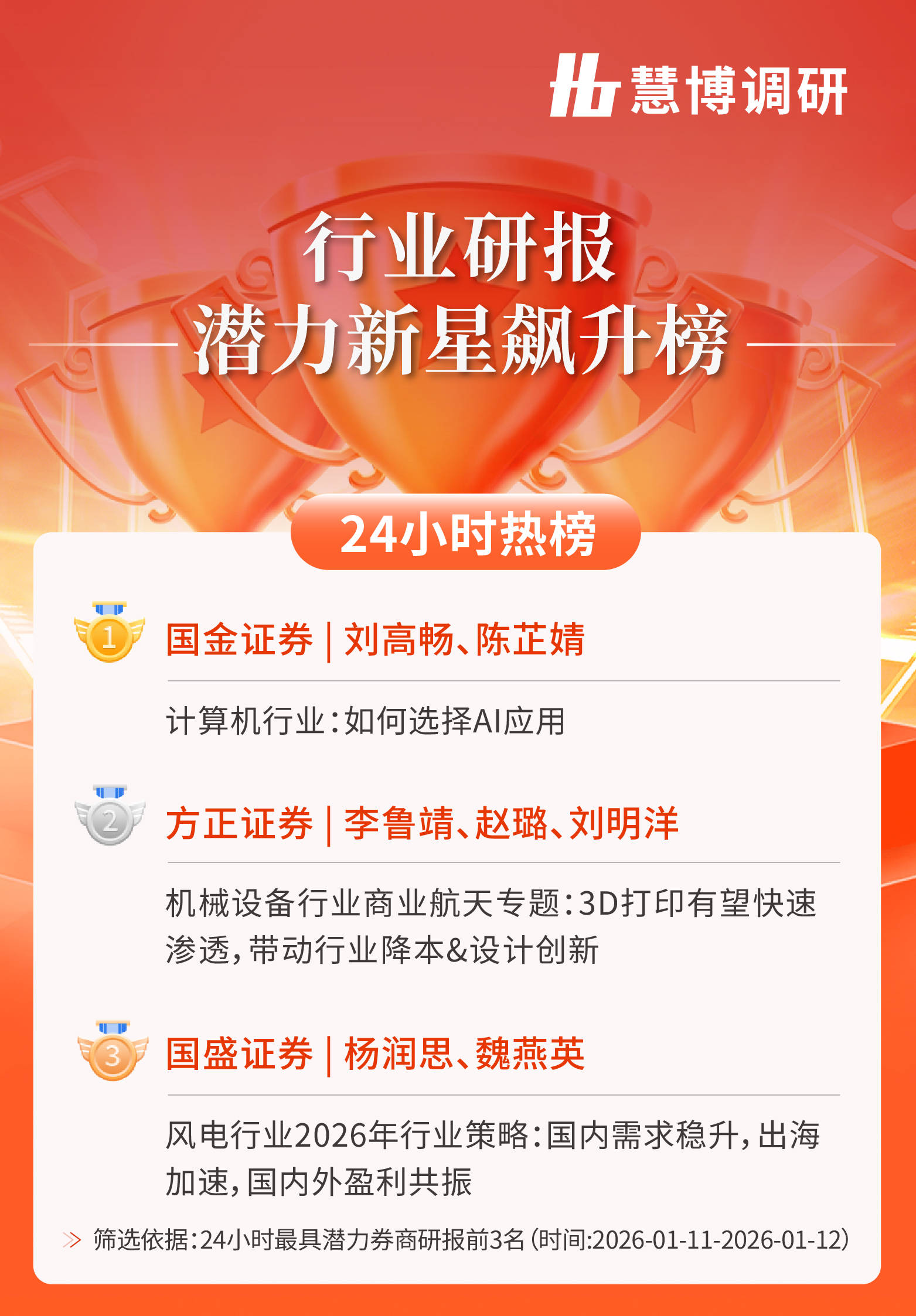 24小时热榜|1月12日行业研报新星飙升榜速递