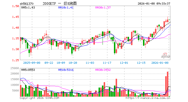1月8日,2000ETF(561370)开盘涨0.00%,报1.435元。2000ETF(561370)重仓股方面,仕佳光子开盘跌0.99%,华胜天成涨1.39%,英唐智控跌1.40%,帝科股份跌1.00%,金字火腿跌0.32%,中际联合跌0.71%,振华股份涨0.45%,炬芯科技跌0.50%,东方电热跌0.19%,信息发展跌0.09%。