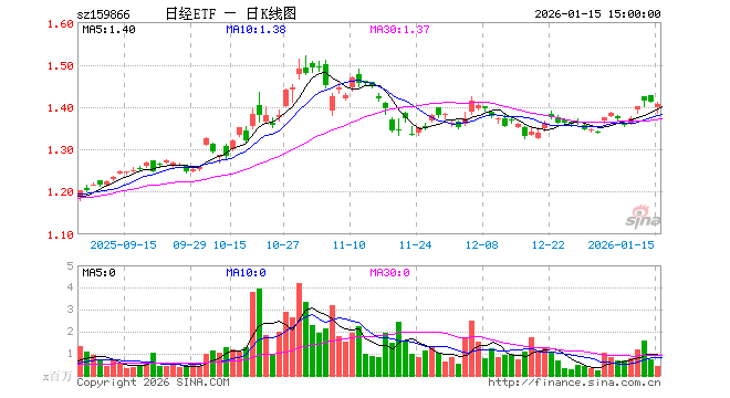 1月15日,日经ETF(159866)跌0.42%,成交额6092.22万元。当日份额增加50.00万份,最新份额为6.71亿份,近20个交易日份额增加900.00万份。最新资产净值计算值为9.31亿元。