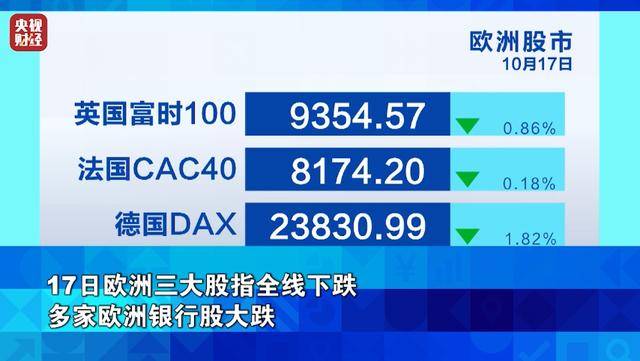 17日欧洲三大股指全线下跌 多家欧洲银行股大跌