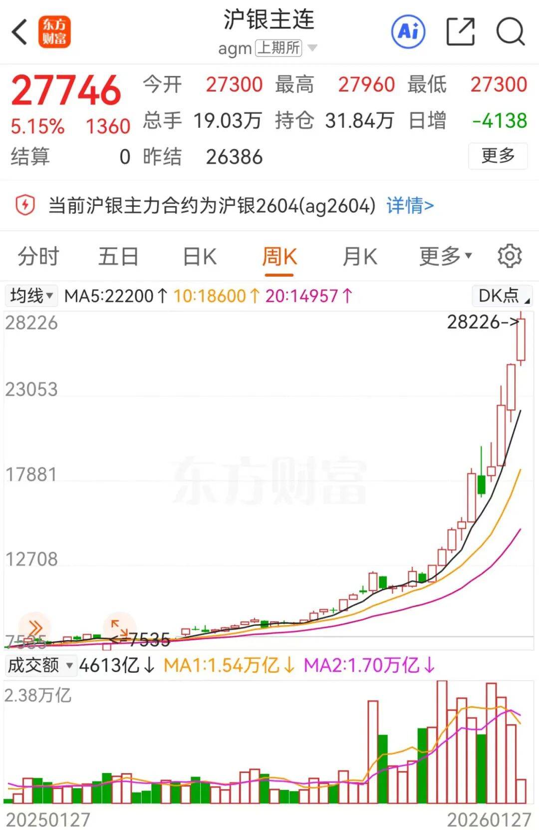 截至1月26日22时,沪银主连保持在27600元/千克的上方。这意味着什么呢?赶碳号简单统计了一下。