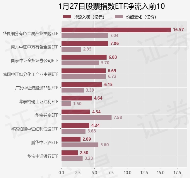 当日有221只股票指数ETF基金出现资金净流入,其中净流入排首位的是华夏细分有色金属产业主题ETF(516650),份额增加了7.04亿份,净流入额为16.57亿元。