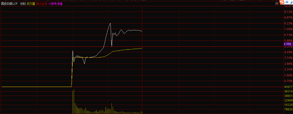 根据Wind数据,截至最新国投白银LOF的溢价率超过40%。这意味着,投资者在场内购买基金时,支付的价格远高于基金的实际净值四成。