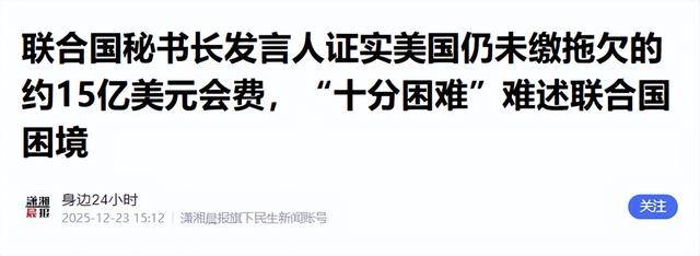 说到底还是老问题,不是没钱,是不想交,美国长期把对国际组织的财政支持,当作一种“可调节工具”,合意就付钱,不合意就拖着,实在要触线了就象征性补一点。