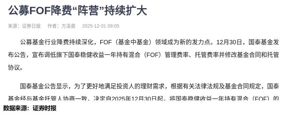 最近刷到个事儿,公募FOF开始集体降费了——国泰基金把旗下一只FOF的管理费从0.9%直接砍到0.3%,华夏、中银这些公司也跟着降,还有南方基金明年1月也要下调费率。刚开始我还纳闷,好好的怎么突然降费?后来看专家分析才明白:监管要帮我们降低持基成本,养老FOF适合长期投资,低费率更划算,再加上市场竞争越来越卷,降费成了基金公司吸引客户的办法。
