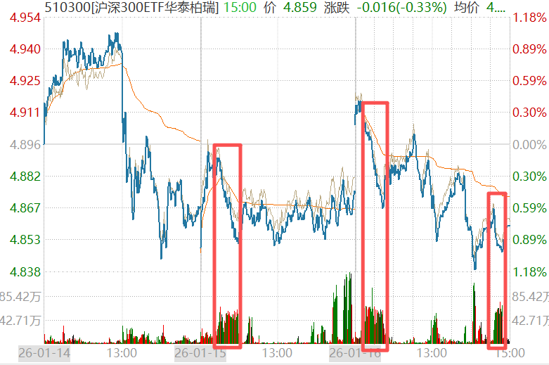 昨天和今天开盘,都有一波猛烈的下跌,且下跌过程中,核心宽基ETF出现了成交量异常放大。包括昨天和今天尾盘,下跌过程中也出现了成交量的异常放大。