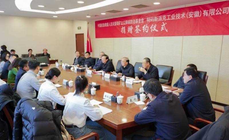 2025年12月4日,中感·特码斯派克工业技术(安徽)有限公司(以下简称“中感·特码斯派克”)向中国应急救援人员关爱和矿山尘肺病防治基金会(以下简称“基金会”)捐赠签约仪式在国家矿山安全监察局顺利举行。基金会理事长张恩玺(原国家煤矿安全监察局党组成员、副局长)、副理事长兼矿山尘肺病防治委员会主任商登莹、副理事长王广湖、何国家,秘书长杨庆生、执行秘书长薛渊博、关爱委员会副主任雷长群、矿山尘肺病防治委员会副主任任玉斌、基金会安徽办事处主任戴钧、副主任周孟颖等一行领导、中感·特码斯派克董事长陈天宝等代表出席仪式。签约仪式由基金会副理事长商登莹主持。
