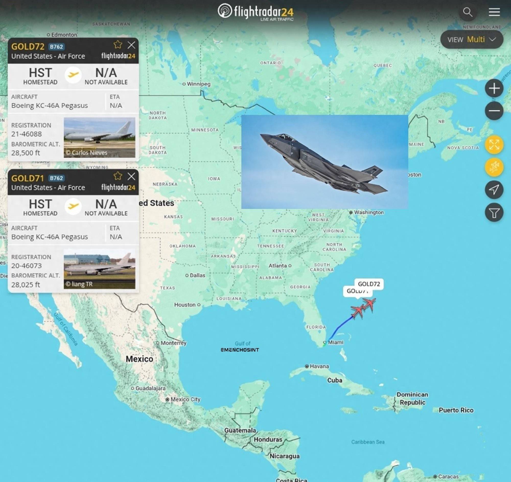 当地时间2026年1月29日,世界航行航线系统数据显示,美军6架EA-18G“咆哮者”电子战机与6架F-35A隐身战斗机在完成对委内瑞拉的突袭任务后,从波多黎各基地经亚速尔群岛拉日什机场中转,最终抵达西班牙莫龙基地,为后续部署中东做准备。与此同时,美国空军在过去24小时内向中东调遣了包括4架KC-46A加油机、9架C-17运输机、1架MC-130J特种作战飞机在内的庞大机群,而以色列空军则于1月18日接收了3架新型F-35I“阿迪尔”隐身战斗机,使其F-35机队规模达到48架。这场跨越大西洋的军事调动,标志着美以联盟正将第五代战机的战略威慑从南美转向中东,而伊朗空军的“米格-29时代”或将迎来终极考验。