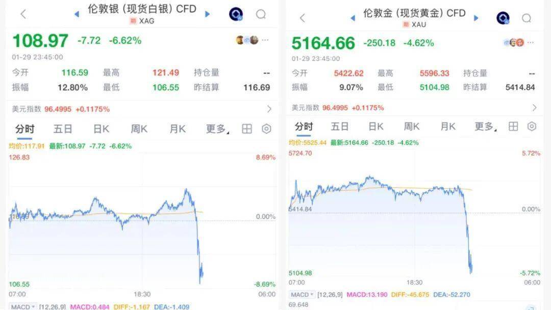 2026年1月30日,一路狂飙的贵金属市场迎来剧烈“降温”,全球黄金、白银市场价格的闪崩来得猝不及防。现货白银一度暴跌8%,现货黄金跌破5200美元/盎司关口。