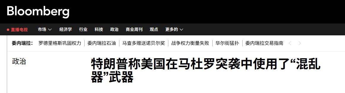 “美国总统特朗普表示,美军在1月3日凌晨,对委内瑞拉的军事侵略行动中,使用了一种新式的混乱武器,导致委内瑞拉军队的中国制造的反隐身雷达和俄罗斯制造的防空导弹失效”。当地时间2026年1月25日,美国媒体报道称,美国总统特朗普表示,美军在本月初,向委内瑞拉加拉加斯市突击,抓捕委内瑞拉前总统马杜罗的行动中,使用了他称之为“制造混乱”的武器。“制造混乱武器,我还不能直接公开这款武器”,特朗普表示,这种武器能让敌方装备失效”。特朗普当时正回答美国记者提问,美国记者向特朗普询问,在拜登政府时期,为美军购买了一款电磁脉冲能武器,那么这款电磁脉冲武器是否在突袭委内瑞拉中使用。
